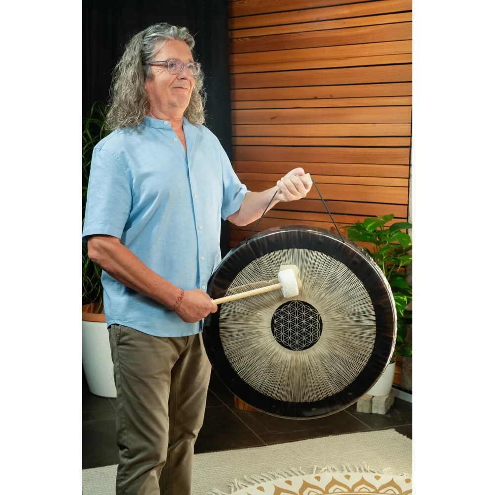 Til Lydterapi, Meditation Og Sound Baths Flower of Life Soundscape Gong er ideel til lydterapi, meditation og sound baths, hvor vibrationer bruges aktivt til at skabe dyb afspænding og nærvær. Den lave grundfrekvens opleves kropsligt og kan understøtte en følelse af stabilitet, indre ro og forbundethed. I professionelle sammenhænge anvendes gongen ofte som det bærende element i længere sessioner, hvor klangens bevægelse guider deltageren gennem stilhed, intensitet og opløsning. Den egner sig lige så godt til individuelle behandlinger som til gruppebaserede ceremonier og workshops.