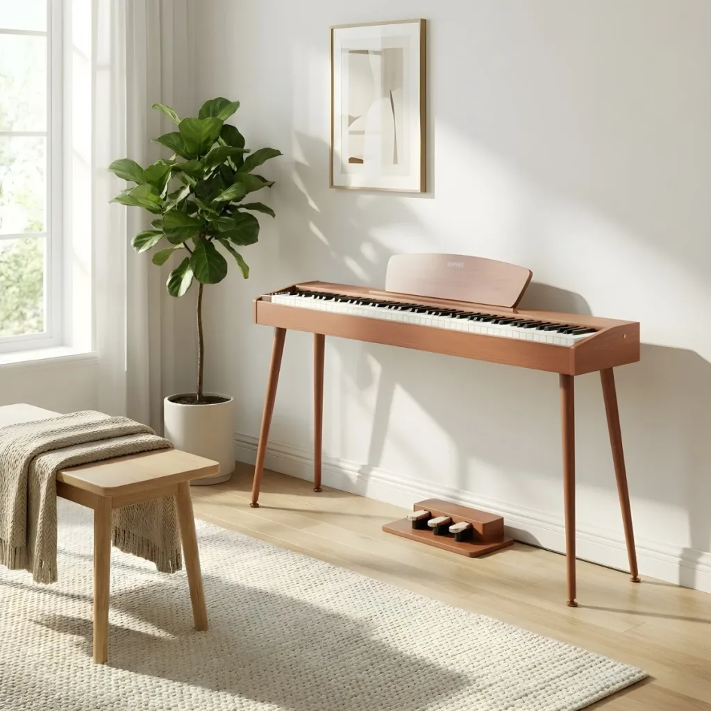 Autentisk Spillefornemmelse Fra Første Dag De fuldvægtede hammer action tangenter giver en realistisk anslagsfornemmelse, som hjælper med at opbygge korrekt teknik, fingerstyrke og dynamik. For begyndere betyder det en god teknisk start, og for let øvede giver det mulighed for mere nuanceret og udtryksfuldt spil. Det medfølgende pedalsæt fungerer som på et akustisk klaver og giver mulighed for at arbejde med musikalitet og klangkontrol i takt med, at niveauet udvikler sig.