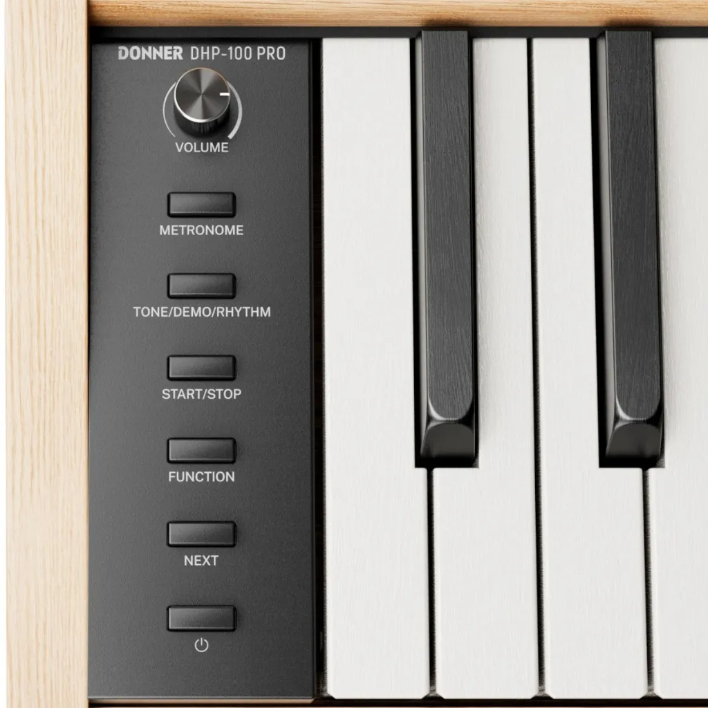 Donner DHP-100 Pro i beige er et elektrisk klaver, der kombinerer realistisk spillefornemmelse, moderne funktioner og et lyst, diskret design – ideelt til hjemmet, undervisning og daglig musikglæde.