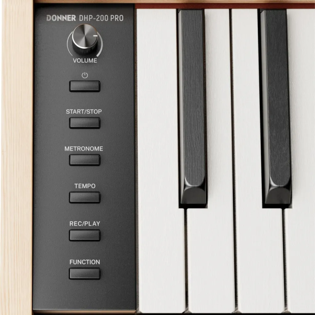 Donner DHP-200 Pro i beige er et elektrisk klaver med fokus på autenticitet, teknik og fordybelse – kombineret med et lyst og diskret design, der passer naturligt ind i hjem og undervisningsmiljøer.