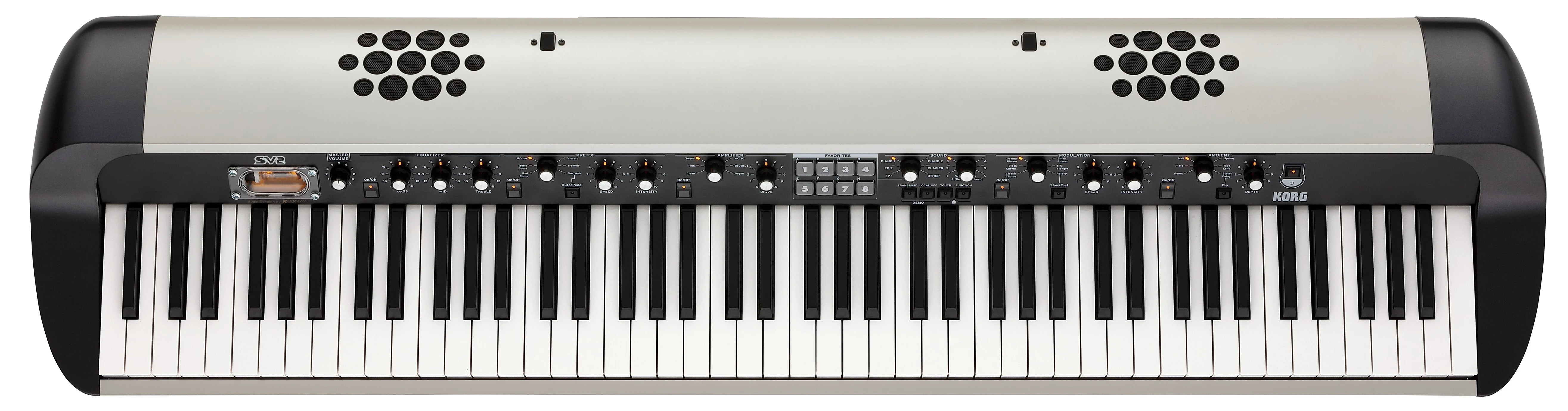 KORG SV-2S 88 er kulminationen på over et årtis udvikling inden for stagepiano-design. Instrumentet kombinerer den varme, autentiske klang fra klassiske elektriske og akustiske klaverer med moderne lydteknologi, intuitiv kontrol og en æstetik, der vækker mindelser om 70’ernes ikoniske scenemodeller. Med Real Weighted Hammer Action 3-tangenter og et integreret K-ARRAY højttalersystem er SV-2S 88 skabt til musikere, der ønsker at opleve vintage-instrumenternes sjæl – men med nutidens præcision, fleksibilitet og stabilitet.