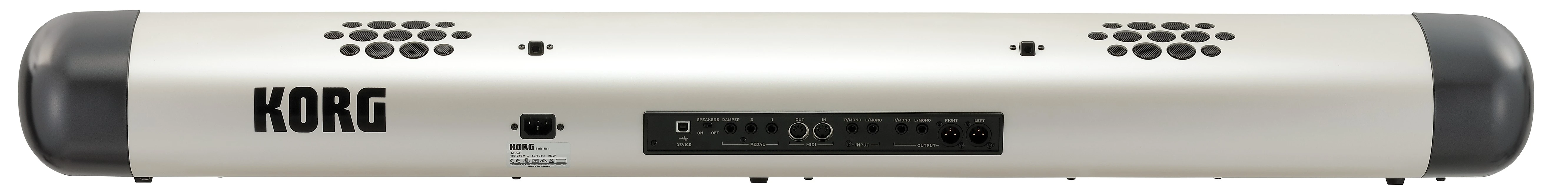 • Professionelle Tilslutninger – Balancerede XLR-udgange, ubalancerede jack-udgange, stereoindgang, hovedtelefonudgang, MIDI-porte, USB-tilslutning og dedikerede pedalporte til sustain og expression.
