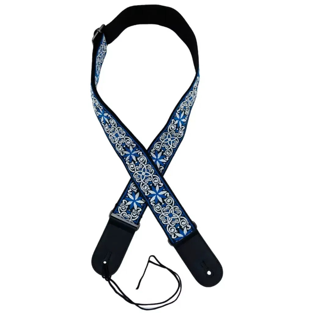 Shelter STRAP-208 – nylon guitarrem med hvid-blåt blomstermotiv