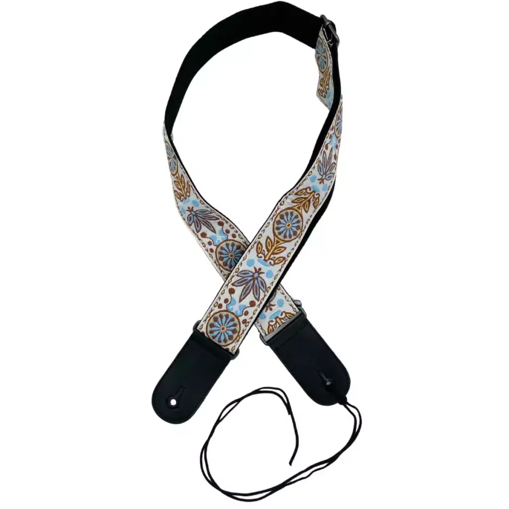 Shelter STRAP-210 kombinerer et livligt design med pålidelig konstruktion. Den er fremstillet i robust nylon med kraftige læderender, der sikrer lang holdbarhed og stabil fastgørelse på dit instrument. Det farverige mønster giver et energisk og personligt udtryk, som passer perfekt til både akustiske og elektriske guitarer.