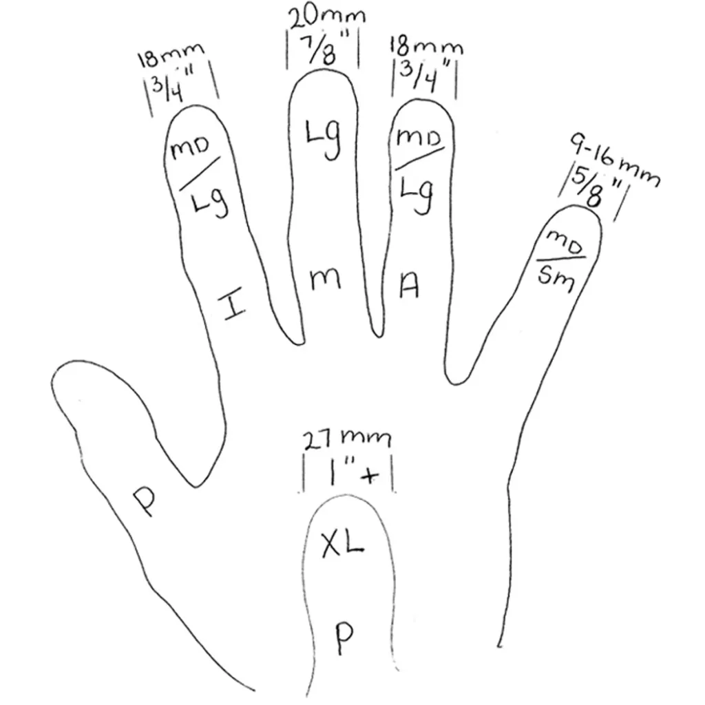 • Passer til fingre på ca. 20 mm i bredden