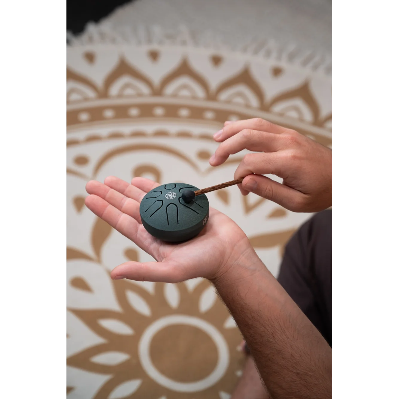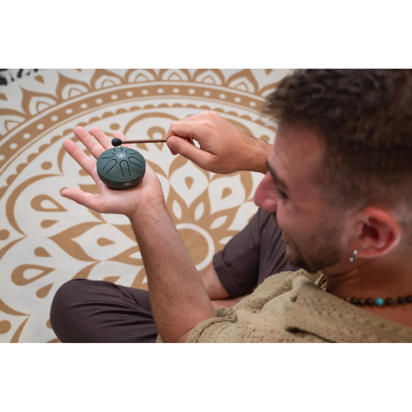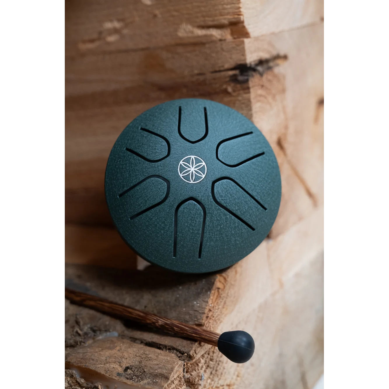 Meinl Sonic Energy PSTD4DGGOL 3" Pocket Steel Tongue Tromme (A-dur, 6 toner, 440 Hz, mørkegrøn, Germ of Life)
