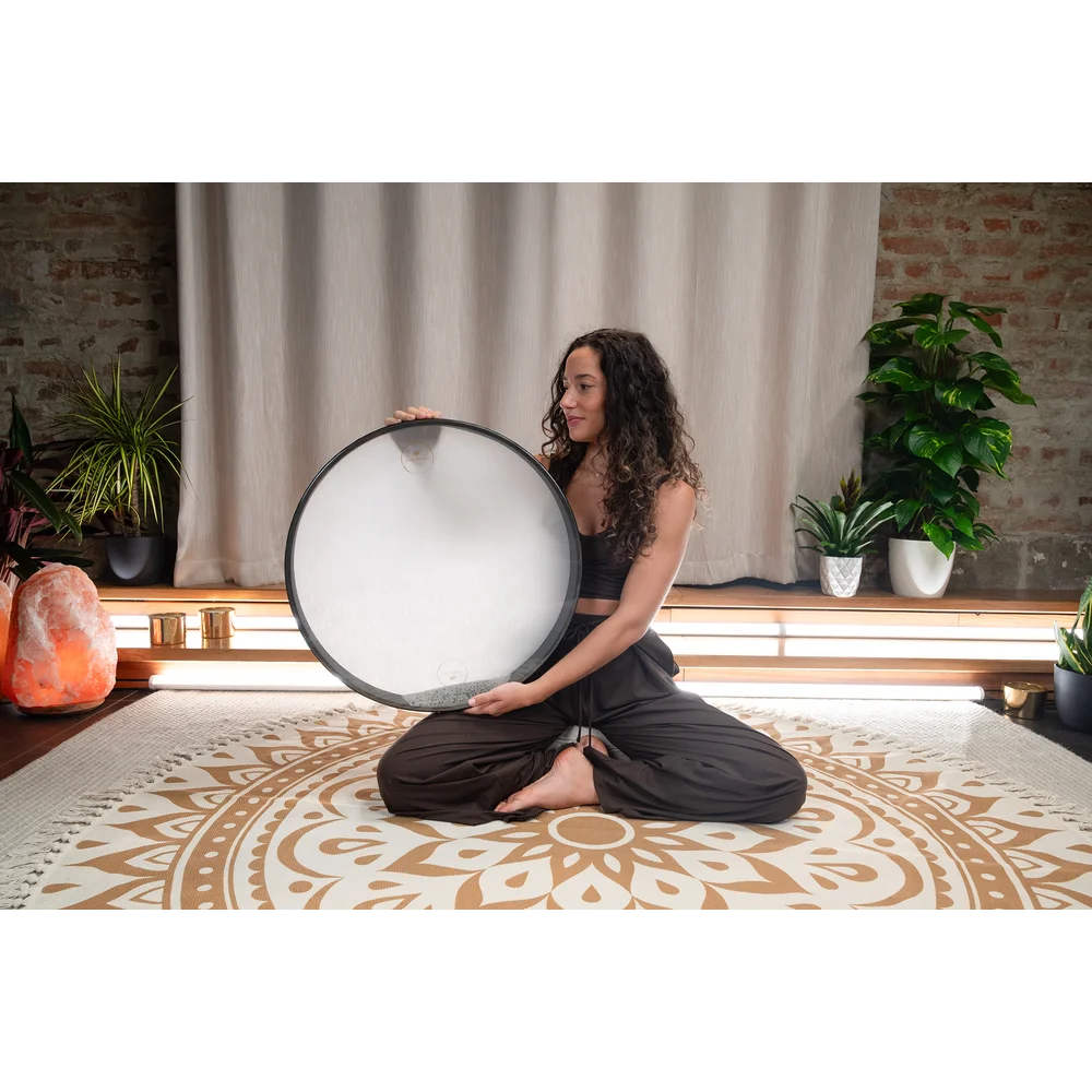 Meinl Sonic Energy Wave Drum er udviklet til at genskabe den beroligende lyd af havets bølger i bevægelse. Når trommen vippes blidt frem og tilbage, bevæger perlerne sig hen over skindet og skaber organiske, flydende lydteksturer, der fremmer ro, nærvær og fordybelse. Denne 22”-udgave er den største i serien og leverer den mest rummelige og dybe bølgeklang. Kombinationen af syntetisk skind og vævet skind giver en fyldig, afrundet lyd med længere bevægelse og mere tyngde, hvilket gør trommen særligt velegnet til større rum og dybe lydsessioner.