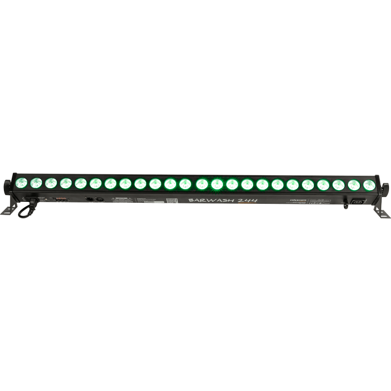 • 24 kraftige RGBW-LED’er – Med 24 x 4W LED’er leverer BARWASH244 en stærk lysstyrke og et bredt farvespektrum. Kombinationen af rød, grøn, blå og hvid gør det muligt at skabe alt fra subtile farvenuancer til intense, levende effekter, der kan bruges til både scenelys, arkitektonisk belysning og events.