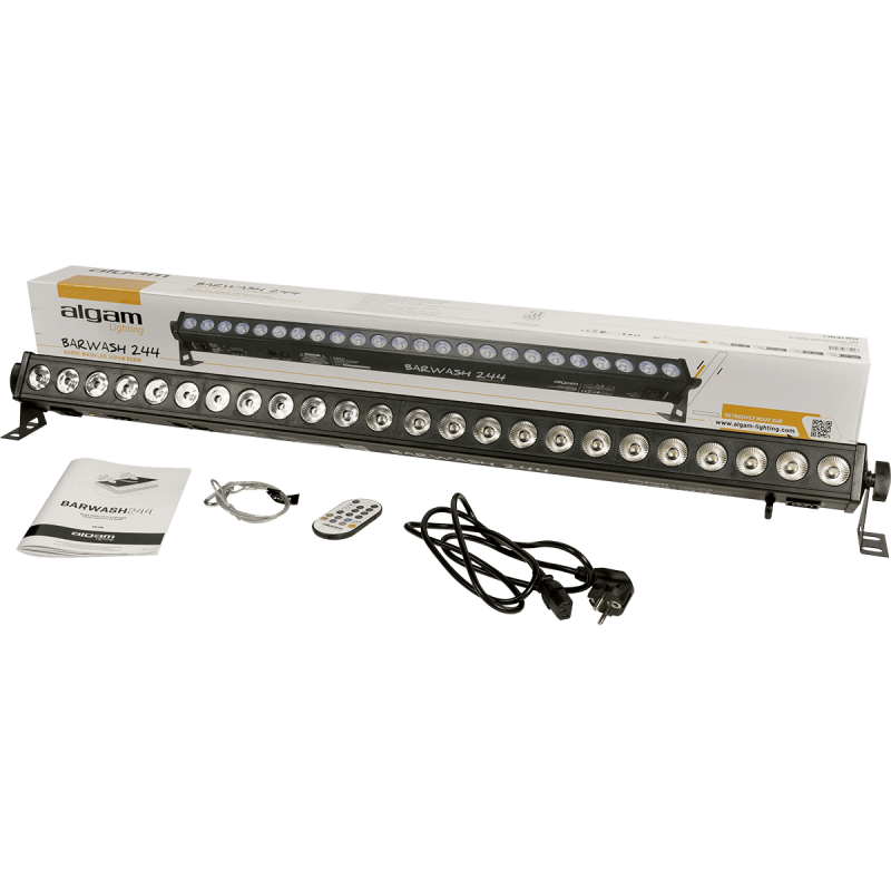 Algam Lighting BARWASH244 er en kompakt og alsidig LED wash bar, der kombinerer høj lysstyrke med fleksible kontrolmuligheder. Med 24 x 4W RGBW-LED’er opdelt i 8 zoner kan du skabe alt fra simple farveskift til dynamiske chase-effekter. Den robuste konstruktion, intuitive interface og medfølgende fjernbetjening gør den velegnet til både professionelle installationer og krævende hobbybrugere.