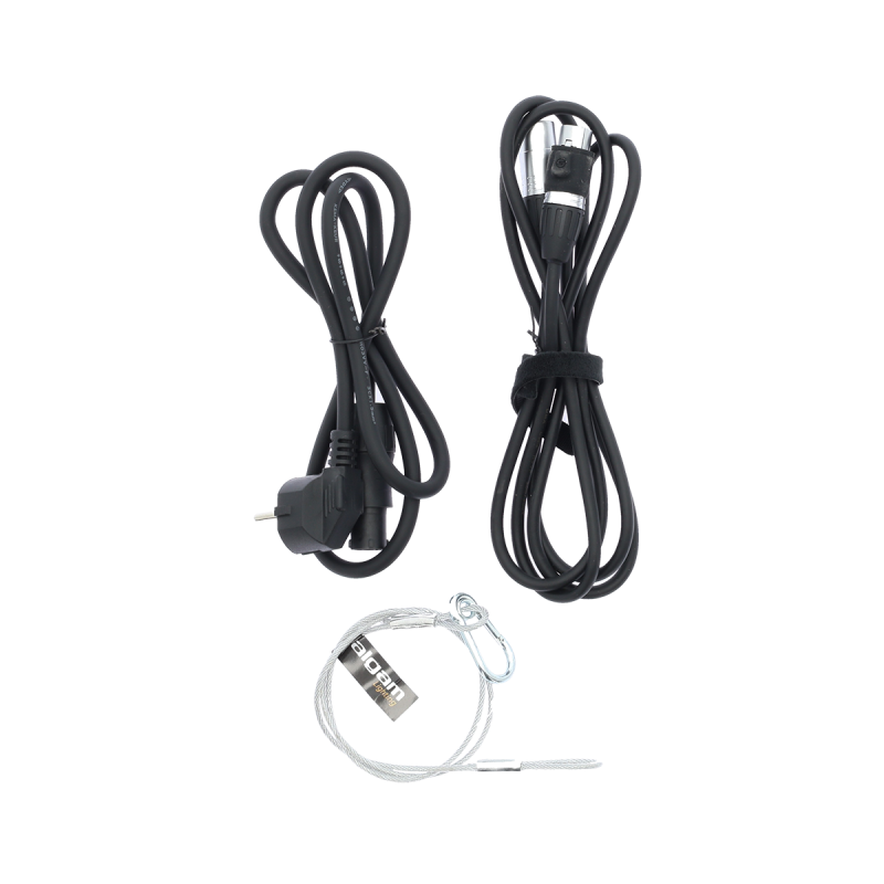 • Medfølger: PowerCon- og DMX-kabel, velcro kabelholder, dobbeltbøjle, sikkerhedswire
