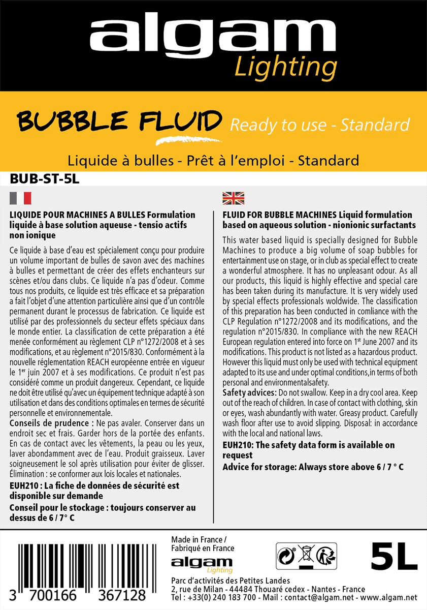 • Algam Lighting BUB-ST-5L Standard Boblemaskine Væske (5 liter)