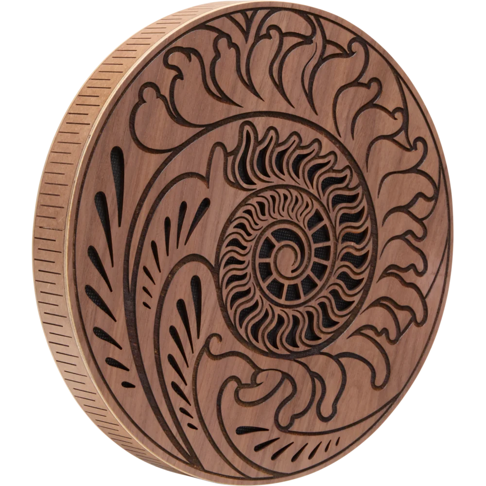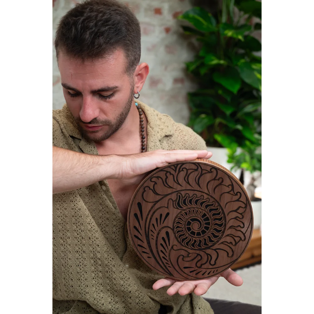 Regn disken er udsmykket med en Fibonacci-inspireret udskæring, der visuelt afspejler naturens egne rytmer og proportioner. Kombinationen af organisk form, flydende bevægelse og beroligende klang gør RDO10F velegnet til meditation, lydterapi, mindfulness og rolige musikalske sammenhænge. Instrumentet leveres med både en blød opbevaringspose og et træstativ, så det kan transporteres sikkert og præsenteres elegant, når det ikke er i brug.