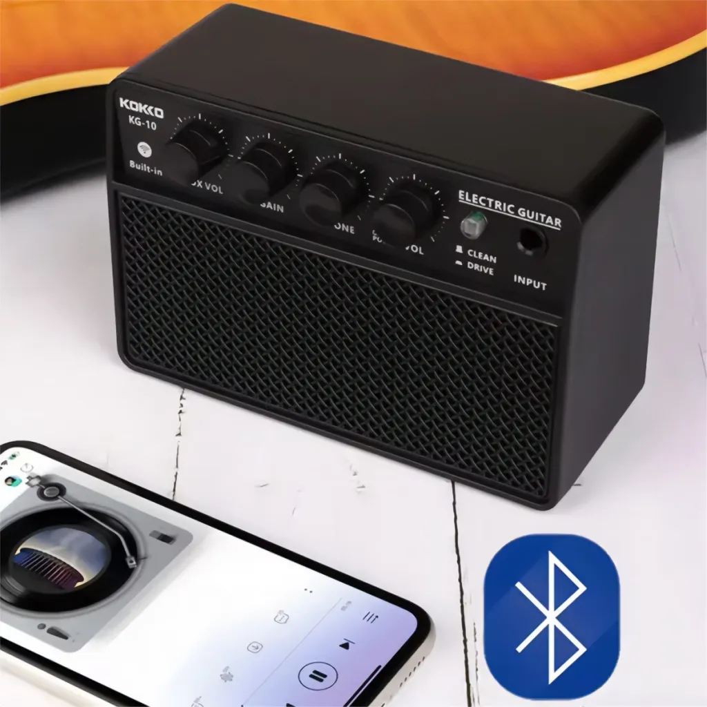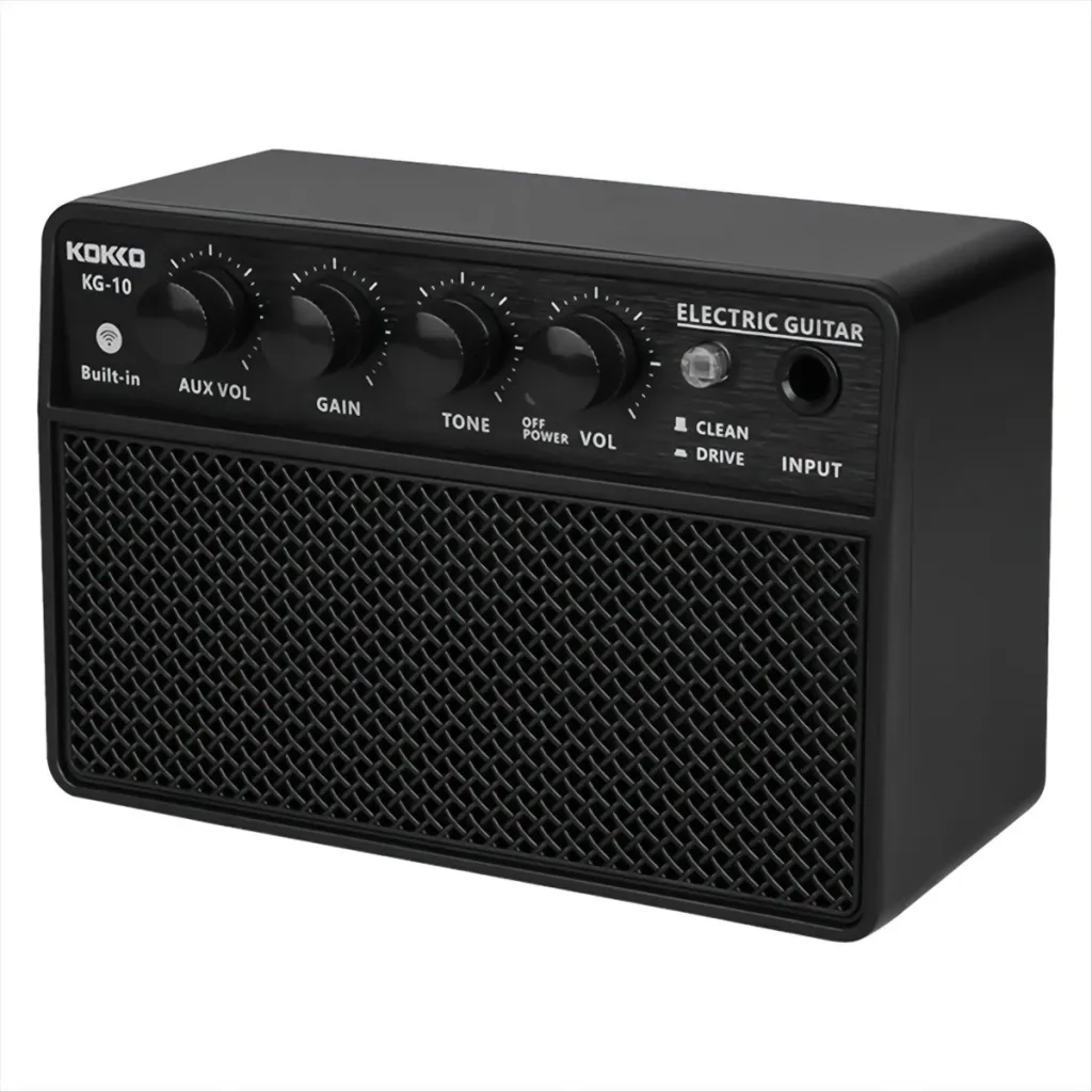 Kokko KG-10 er en kompakt og praktisk guitarforstærker, der kombinerer mobilitet, genopladeligt batteri og Bluetooth i et format, der er ideelt til daglig øvning og fleksibelt brug.