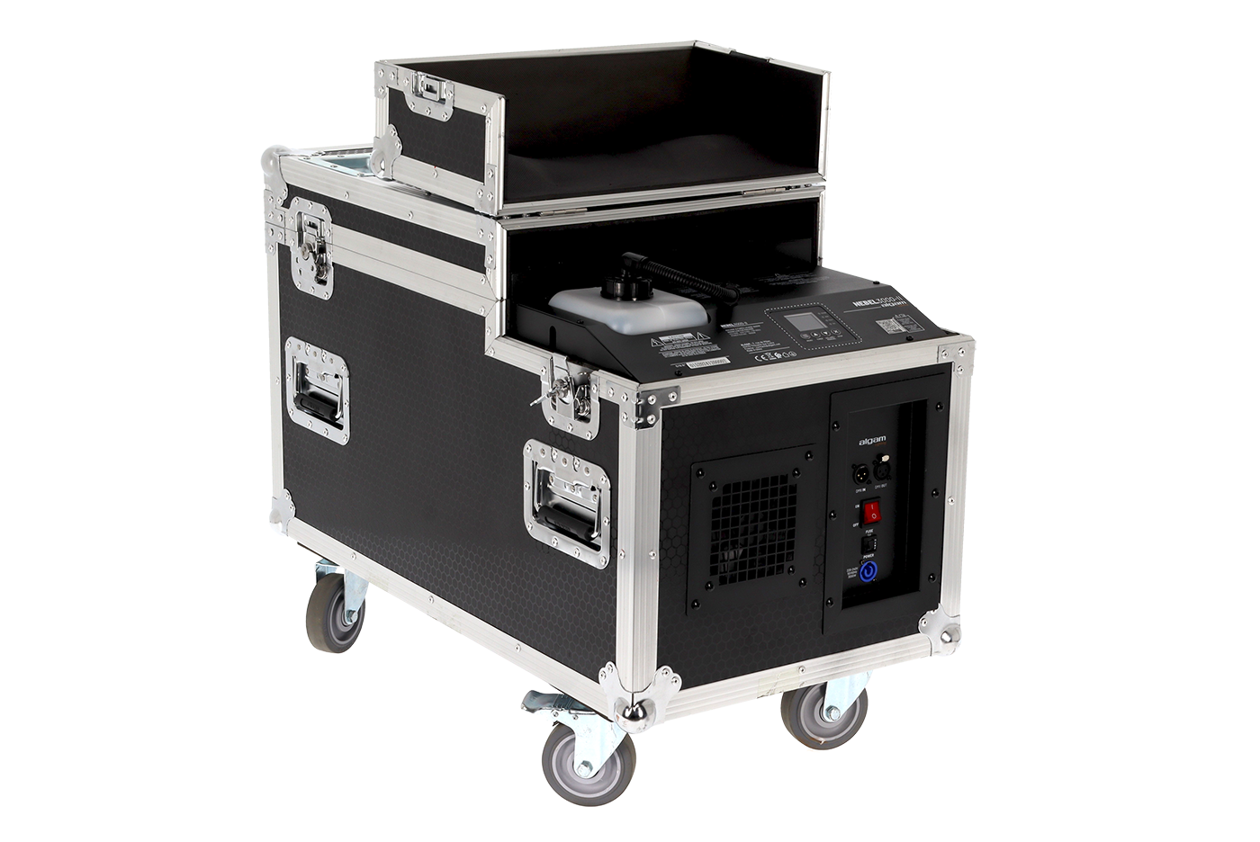 • Robust design – Maskinen er indbygget i en flightcase med hjul (to med bremse), hvilket gør transport og opsætning enkel. Med sin solide konstruktion og vægt på 43 kg er den skabt til intensiv professionel brug, hvor pålidelighed er afgørende.
