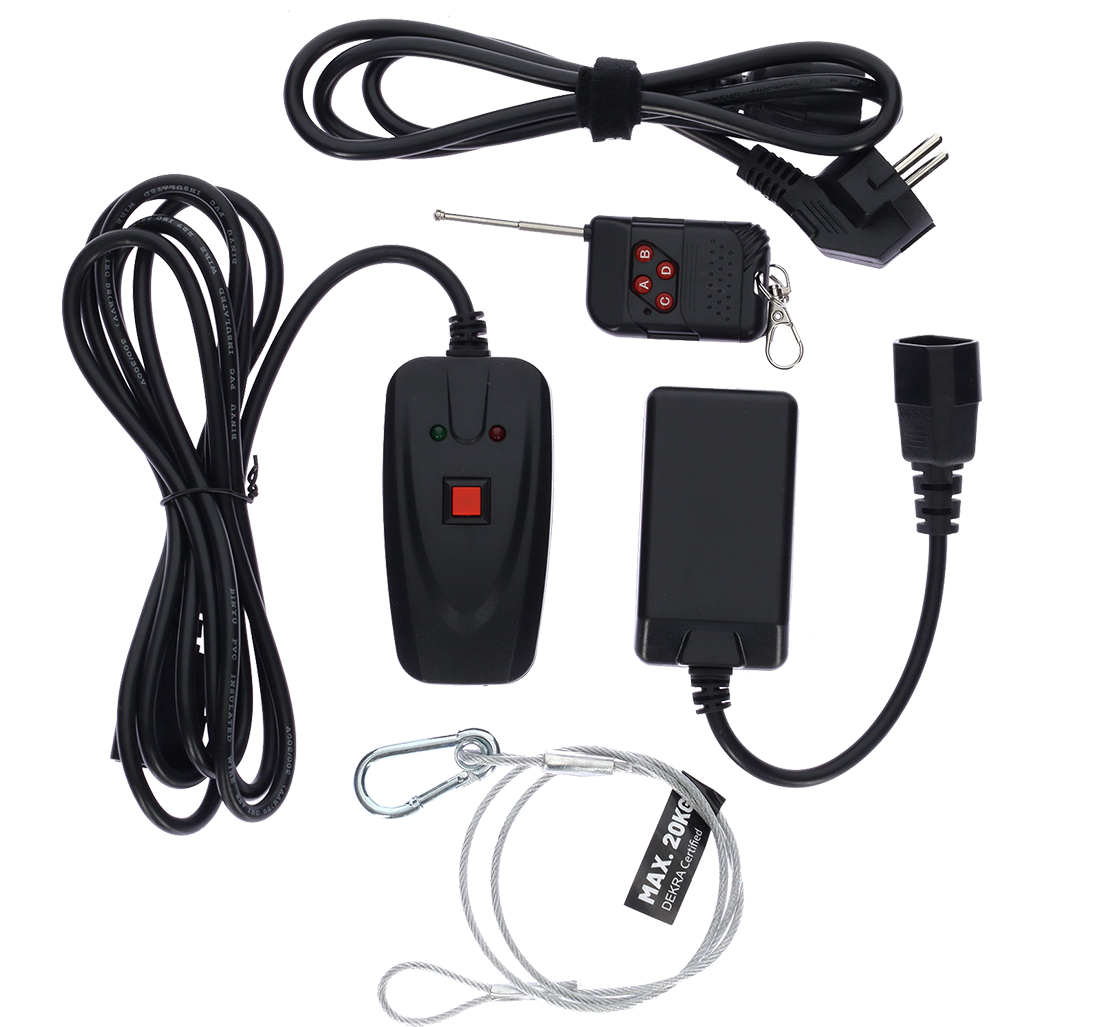 • Fleksibel kontrol – S1000 leveres med både en trådløs fjernbetjening (inkl. modtager og batteri) og en kablet fjernbetjening. Det giver dig fuld frihed til at vælge mellem hurtig, direkte aktivering eller komfortabel styring på afstand.