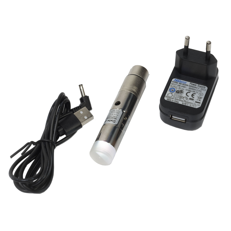 • Trådløs DMX-modtager – Batteridrevet enhed, der giver op til 20 timers drift uden kabler