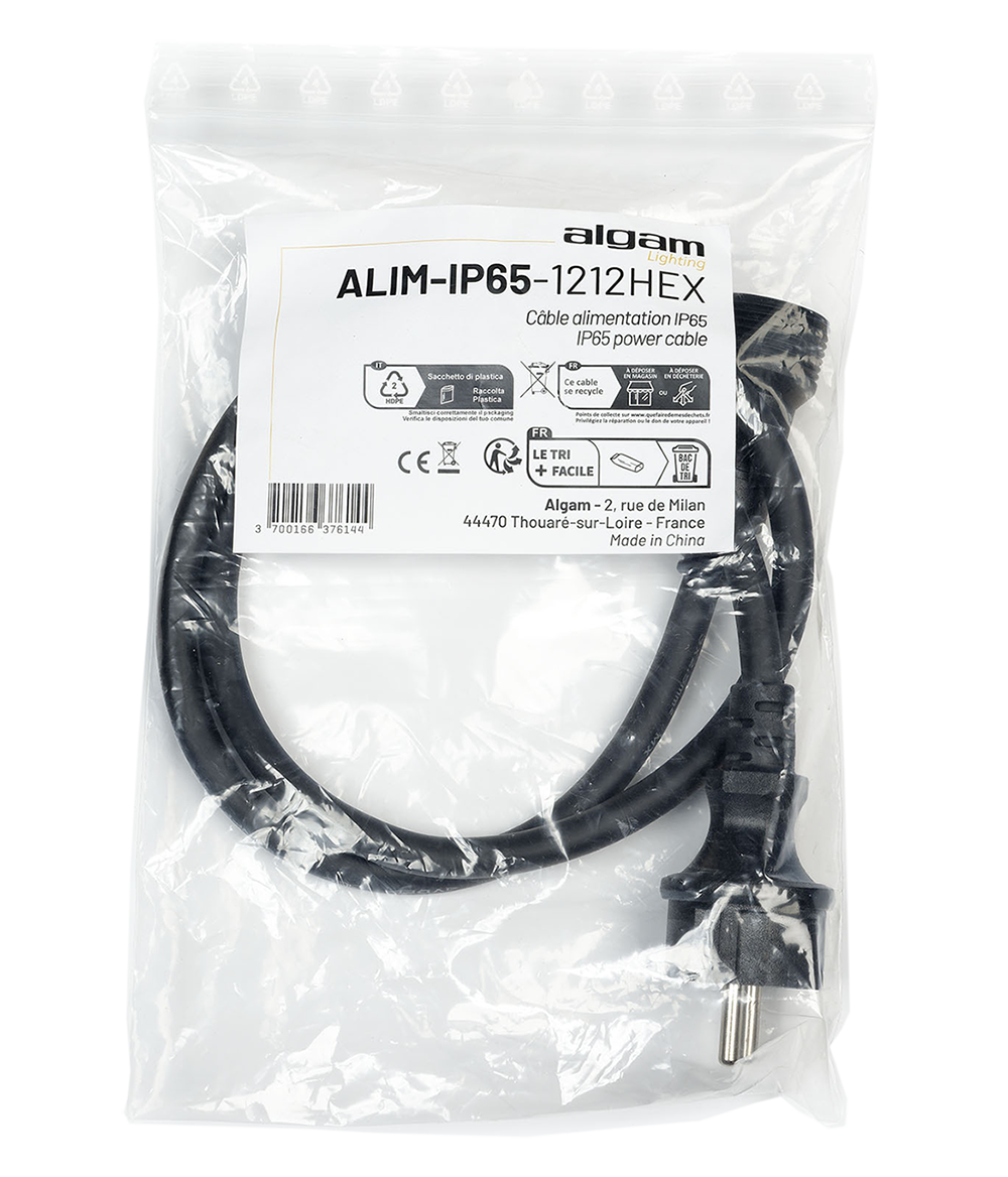 Algam Lighting ALIM-IP65-1212HEX Udendørs Strøm Kabel (IEC han)