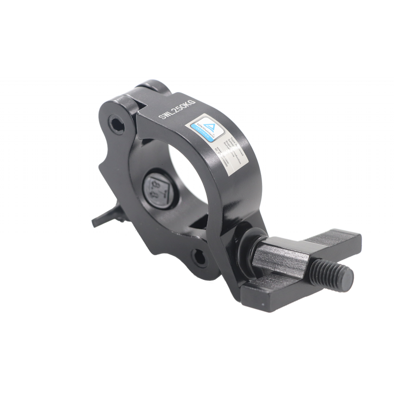 Bygget til professionelle behov Uanset om du arbejder som lysdesigner, tekniker eller eventarrangør, giver denne halv-clamp en stabil og sikker løsning, der kan modstå intensiv brug. Dens sorte finish sikrer et diskret og professionelt look på scenen eller i installationen.