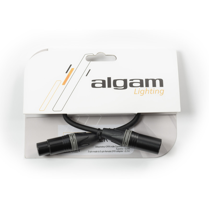 Algam Lighting ADAPT-XLR-M3F5 – Fleksibilitet, kompatibilitet, enkelhed (3-pin DMX han → 5-pin DMX hun, 0,3 m)