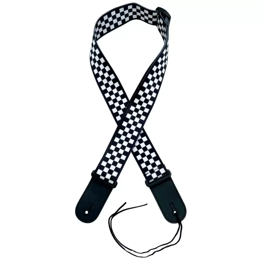 Shelter STRAP-202 Nylon Guitarrem m/læder ender (sort-hvid m/skakbræt)