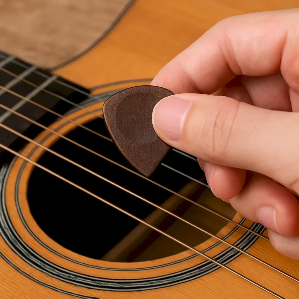 Beaton Woodnote Black Walnut er et plekter skabt af massivt sort valnød, kendt for sin varme og detaljerede klang. Det kombinerer naturlig æstetik med præcision og komfort – et ideelt valg for guitarister, der ønsker et mere organisk anslag og et stykke håndværk, der føles levende i hånden.
